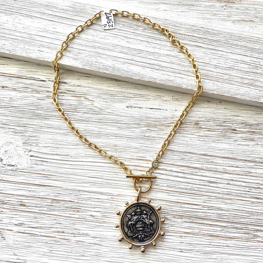 Copper Linen Button up Shirt w Ruffled Gathered Sleeve