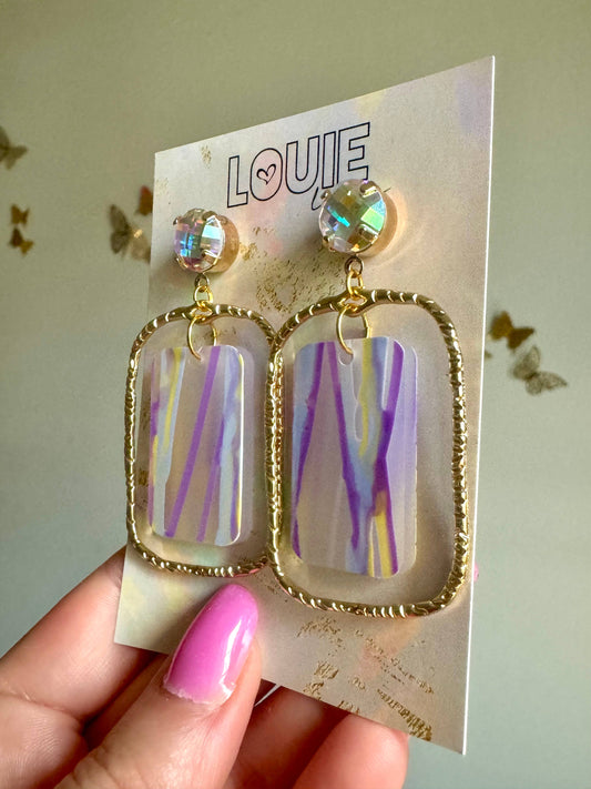 Purple Yellow Gold Louisiana Mardi Gras Acrylic Earrings