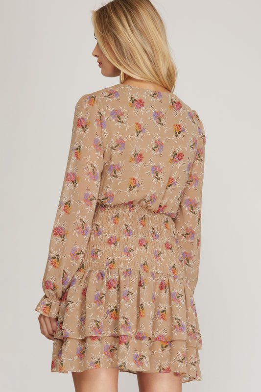 SALE 50% off Floral Smocked Dress - Lt. Taupe