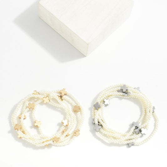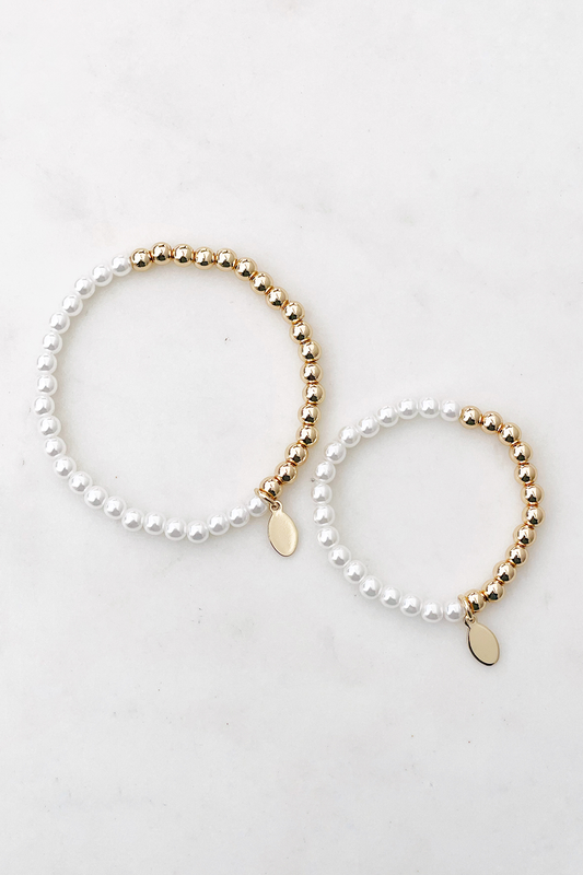 Pearl Mama & Mini Bracelet Set: Gold/pearl