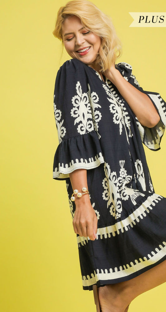 Hunter Green Pullover Polo Dress with Ruffle neck -Curvy Collection