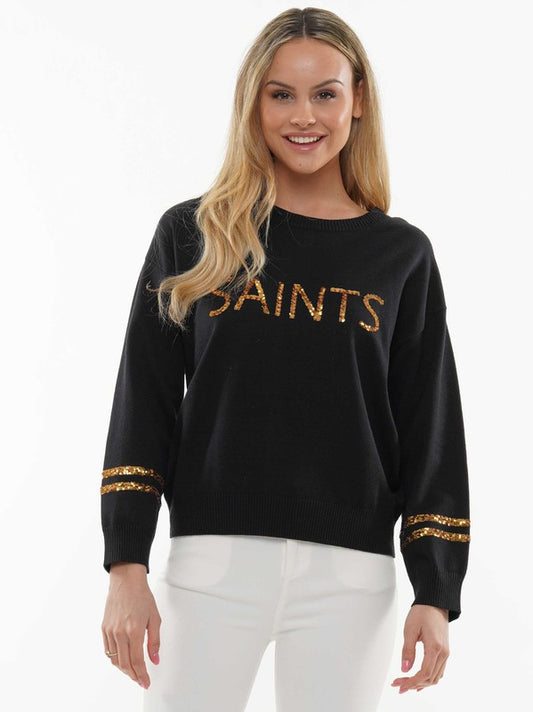 Saints Black with Gold Footballs knit sweater - Curvy Collection
