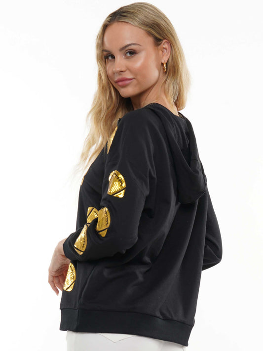 Black with Gold Footballs 1/4 zip Pullover Hoodie