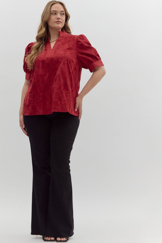 Red Floral Embroidered short Puff Sleeve Top - The Curvy CollectionRegular price $66.00 USDRegular priceUnit price / per-