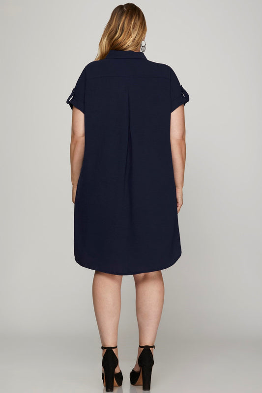 Black Button Up Shirt Dress w Pockets - curvyRegular price $47.00 USDRegular priceUnit price / per