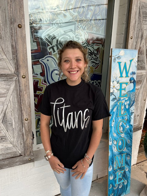 Titans Jumbo Cursive Metallic Puff T shirtRegular price $33.00 USDRegular priceUnit price / per-
