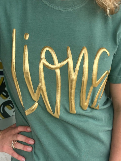 SLU Lions Jumbo Cursive Metallic Puff T shirtRegular price $33.00 USDRegular priceUnit price / per-