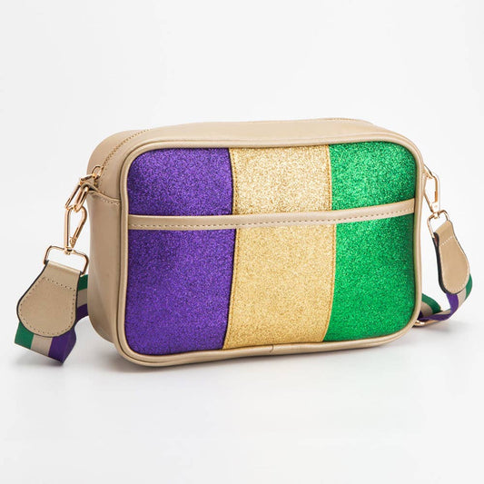 Faux Leather Mardi Gras Sparkle Front Rectangle Crossbody Ba