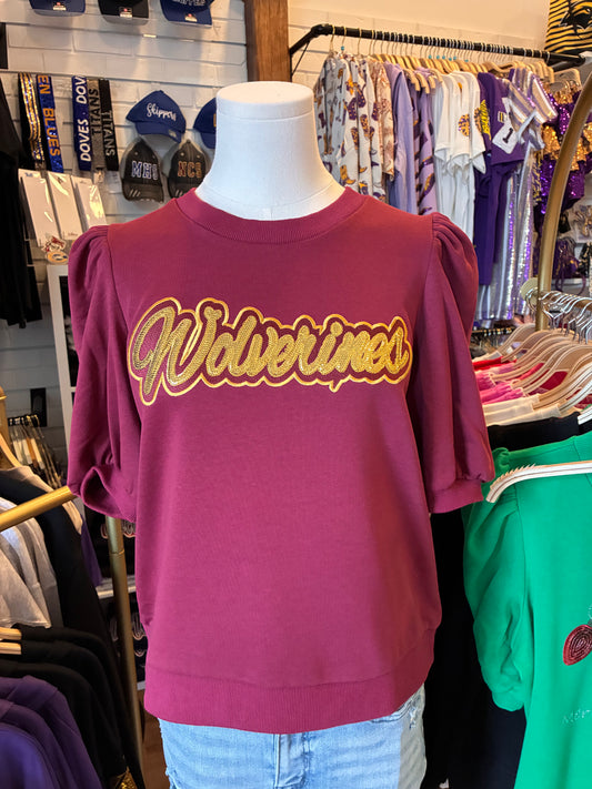 Wolverines Burgundy Puff Sleeve Round Neck Top