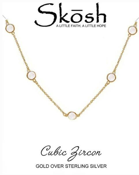 A fine gold chain set with slightly larger clear gemstones, each catching light to craft an exquisite, sparkling trail. With its elevated presence, this these feels both luminous and captivating, perfect as a standout or in your go to stack.