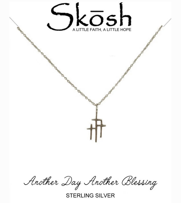 Three small crosses linked along a fine chain. Thoughtfully aligned, this piece offers a subtle, balanced design providing a statement with quiet meaning.