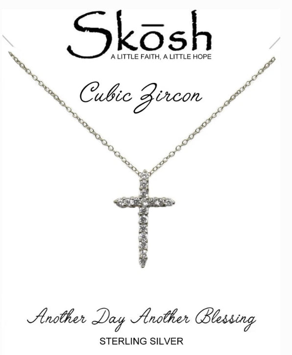 A slim chain with a small cross accented by cubic zirconia. Sculptural and subtle, it adds a quiet shimmer and refined presence without overpowering the look.