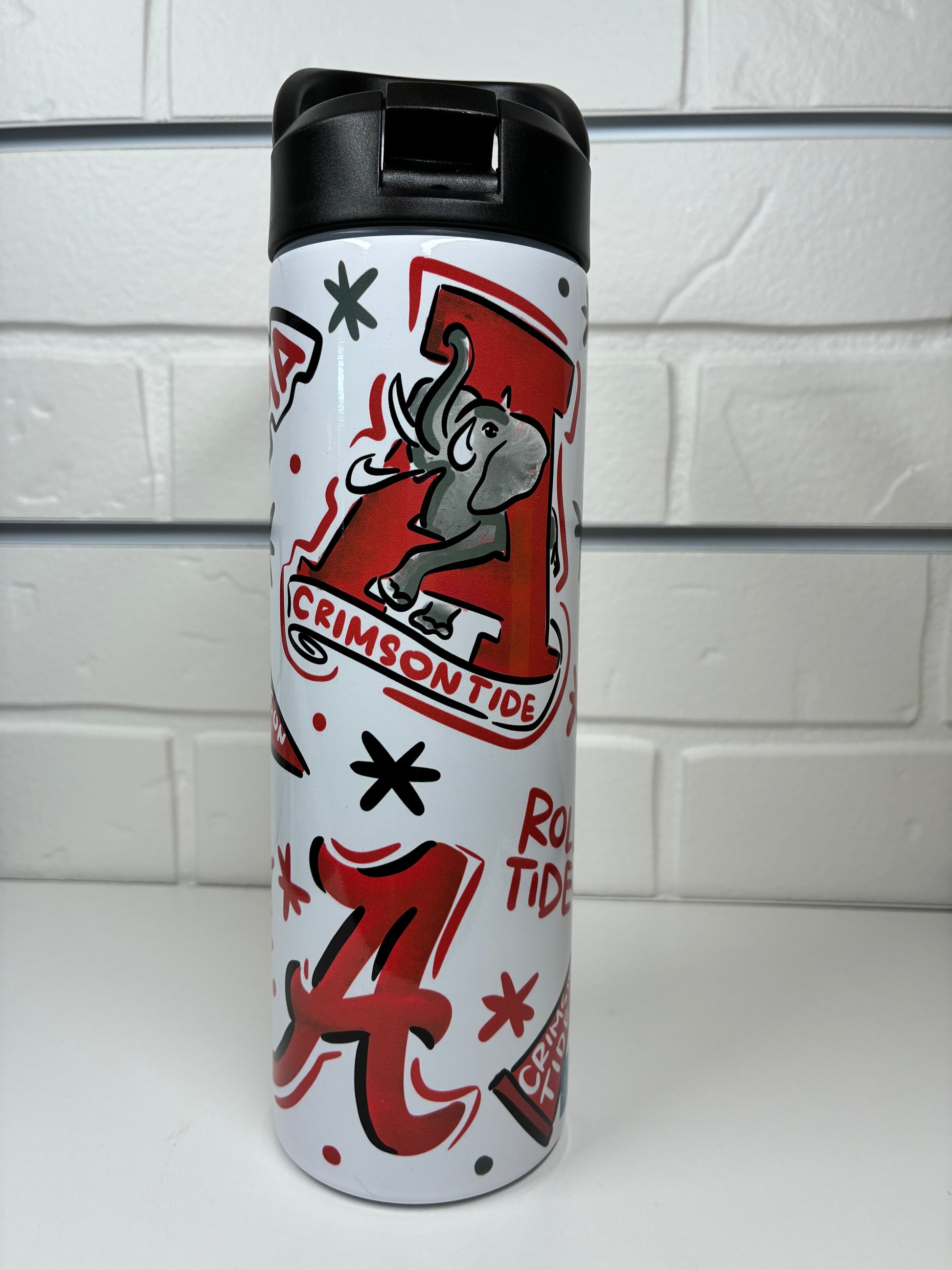 New to our School Spirit Line! 20oz water bottle with screw on lid and flip spout! You will love it while representing your Favorite Team and School!