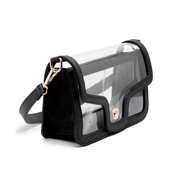 Black Clear Vegan Leather Crossbody/Wristlet/Clutch