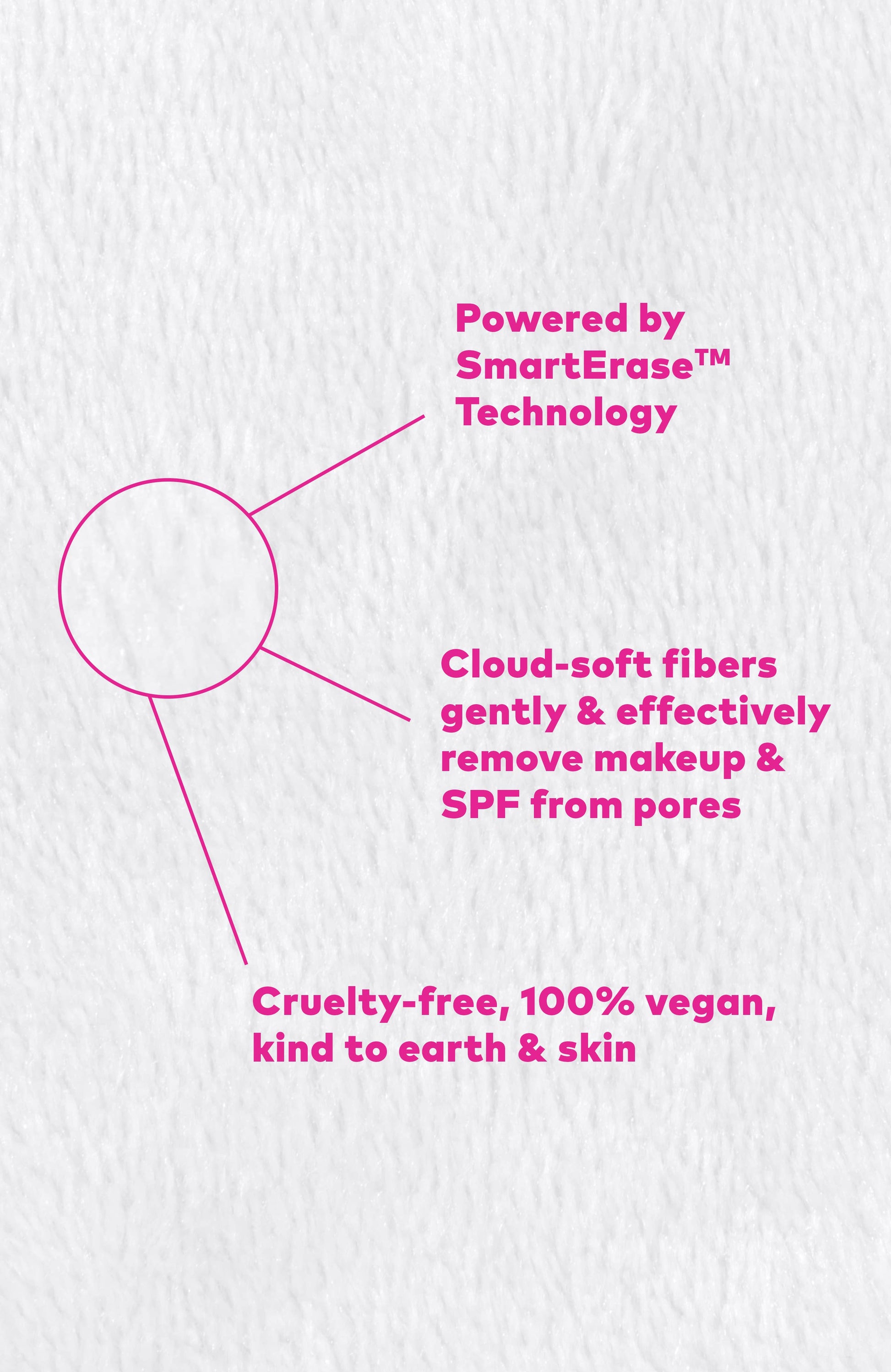 Remove & Erase makeup with JUST WATER™ including waterproof. Our patented, water-activated makeup remover uses cloud-soft fibers to gently & easily remove all cosmetics & sunscreen/SPF. 2 in 1 benefit: Erase & Exfoliate