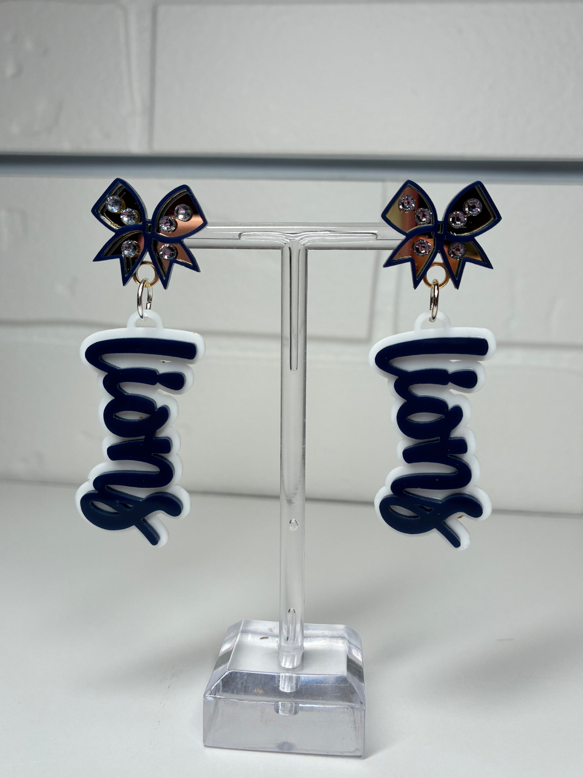 Elevate any outfit with CHS Lions Dangle Earrings. Made with high-quality materials, these dangle earrings add a touch of sophistication to your look. Perfect for both casual and formal occasions, these earrings are a must-have for any fashion-forward individual.