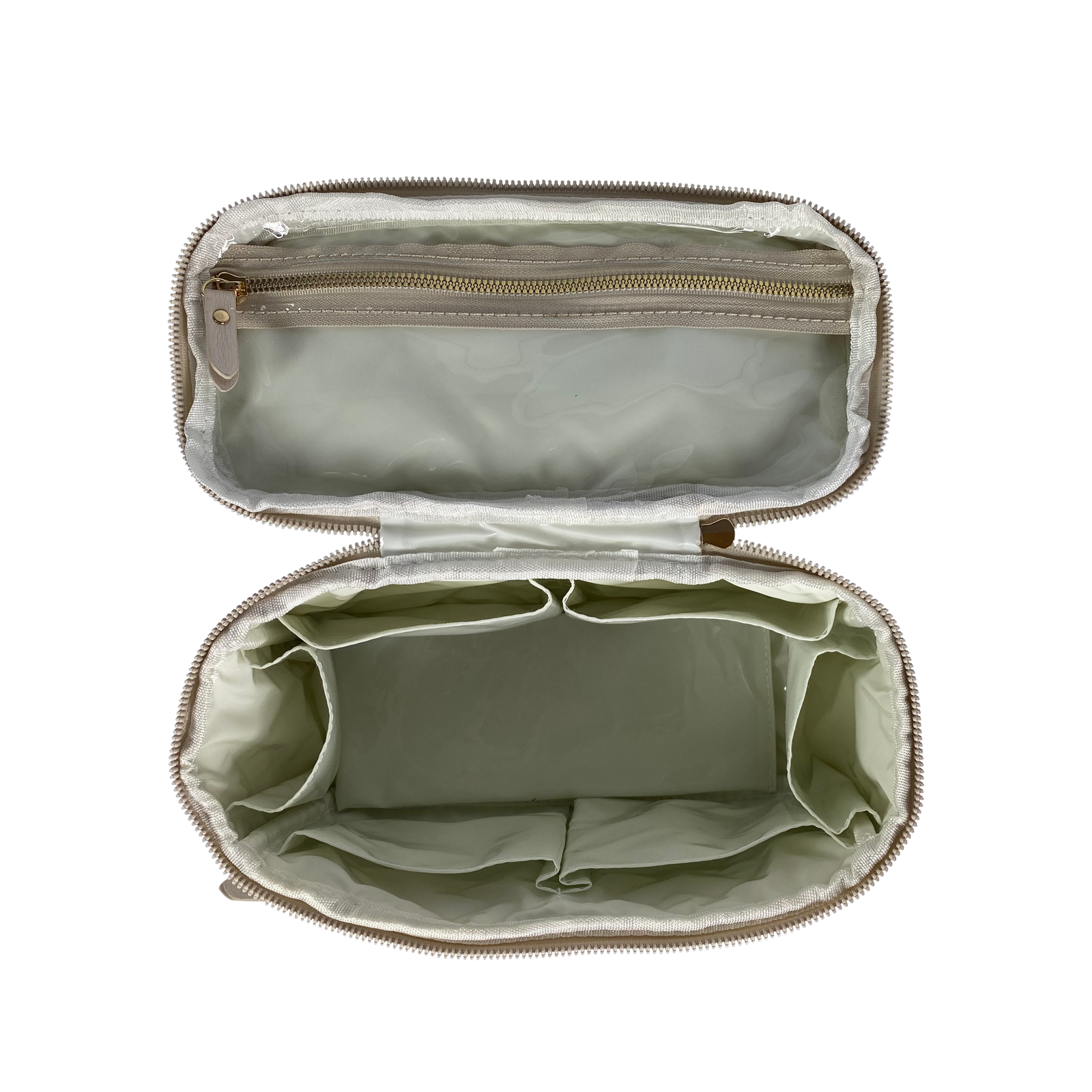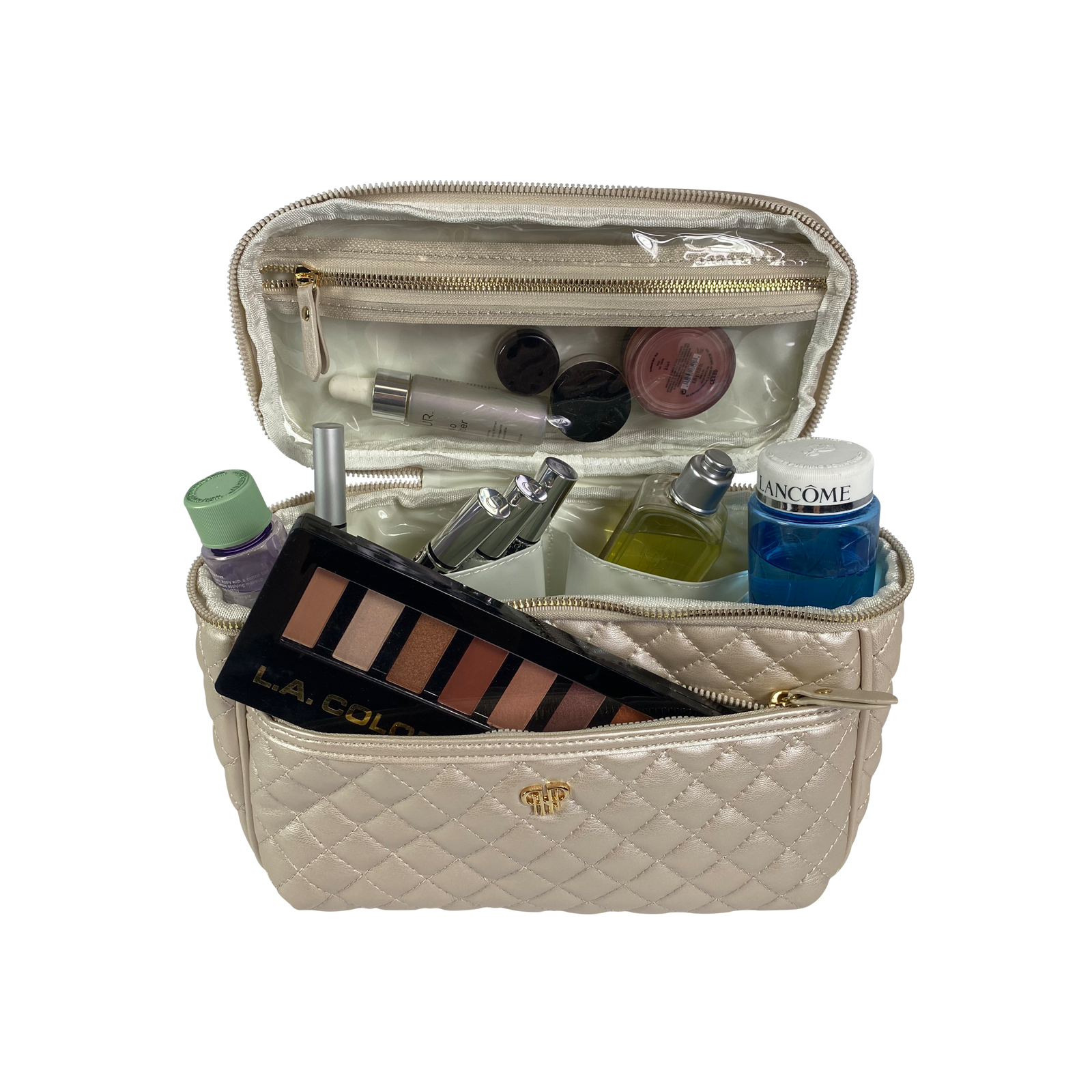 Soft and feminine, this luxe pearlized vegan leather elevates this Train Case to another level. (It's always a favorite bridal gift.) Experience the perfect blend of versatility and organization. The large center compartment and six interior side pockets ensures your beauty and toiletry essentials are always elegantly organized.