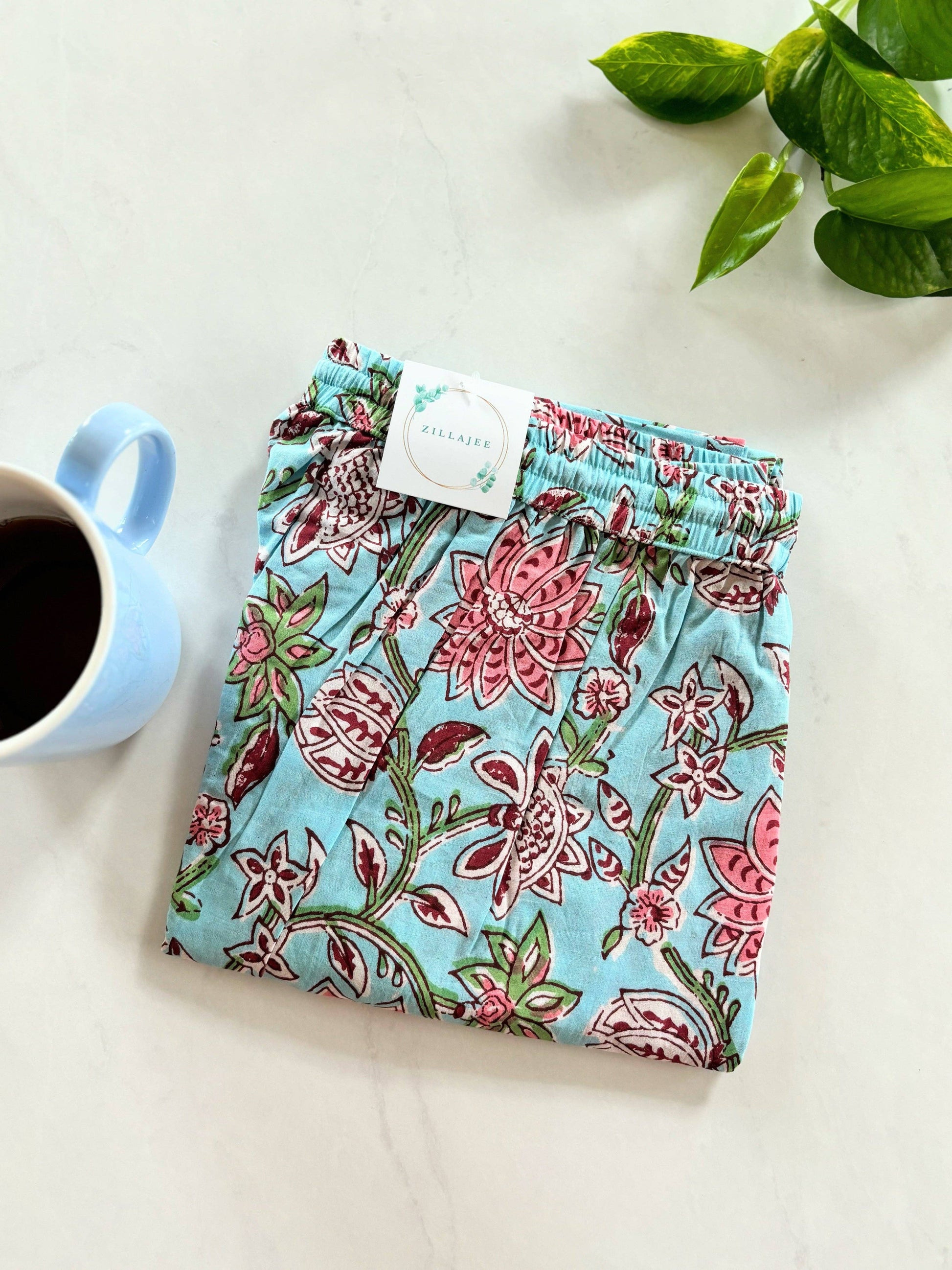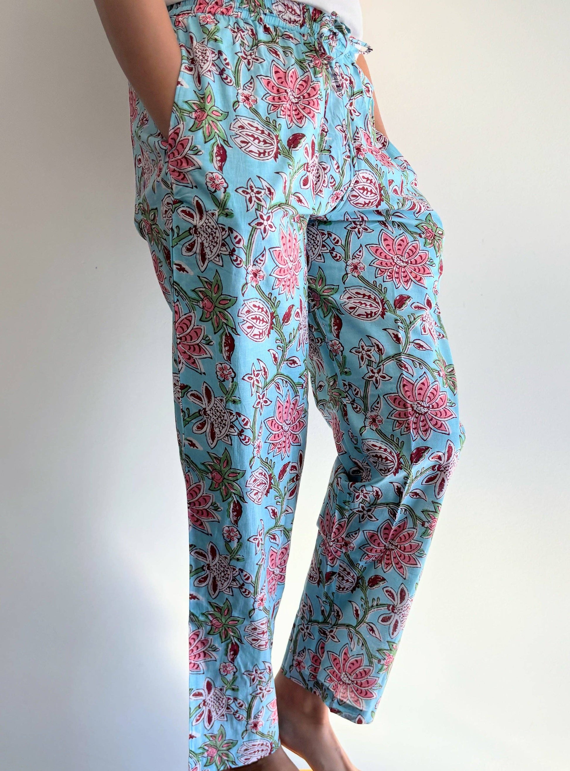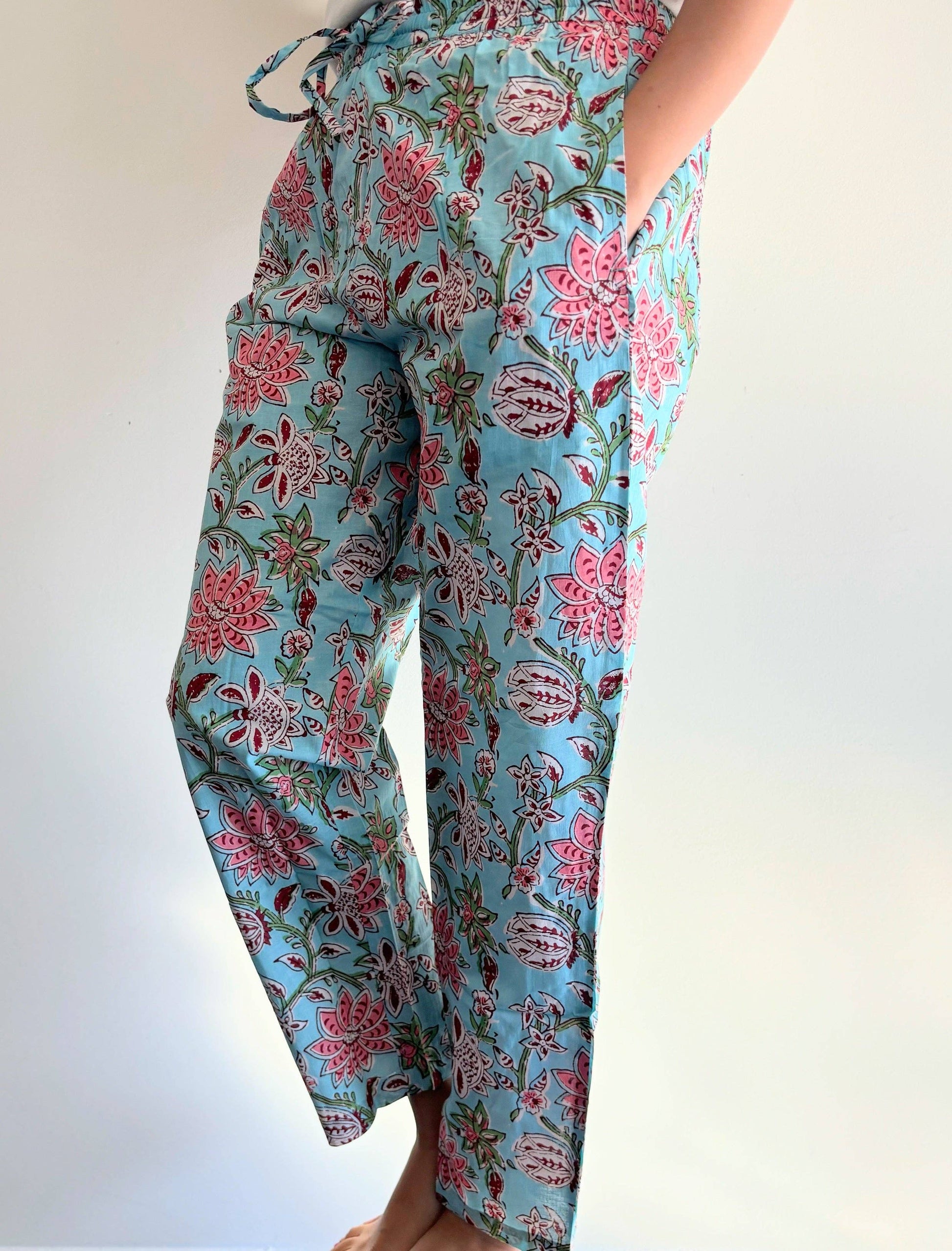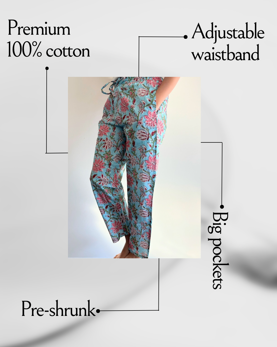 Comfy and breathable cotton lounge & sleep pants with a beautiful floral print, elastic waistband and side pockets, perfect for a modern and casual look.