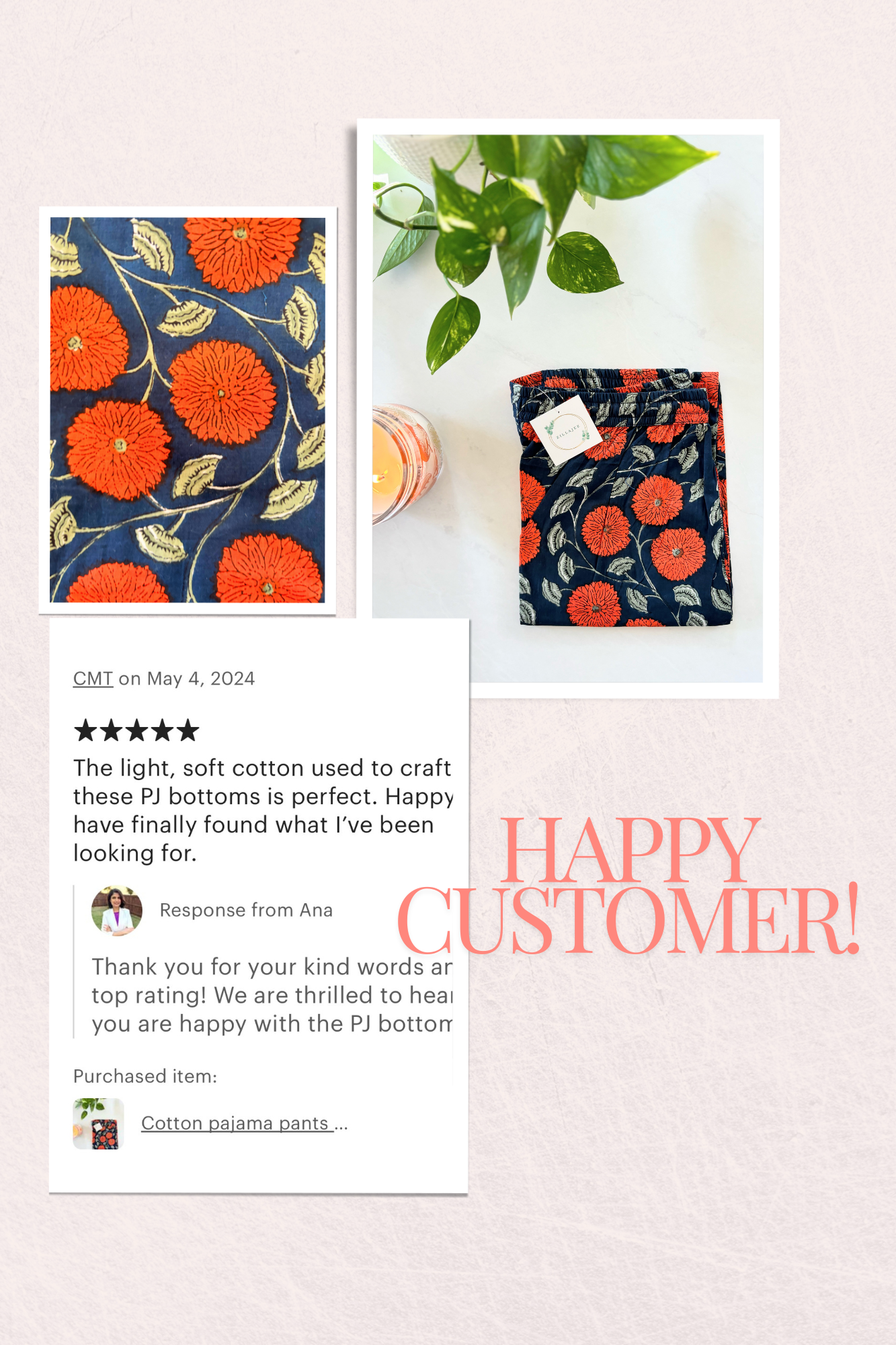Comfy and breathable cotton lounge & sleep pants with a beautiful floral print, elastic waistband and side pockets, perfect for a modern and casual look.