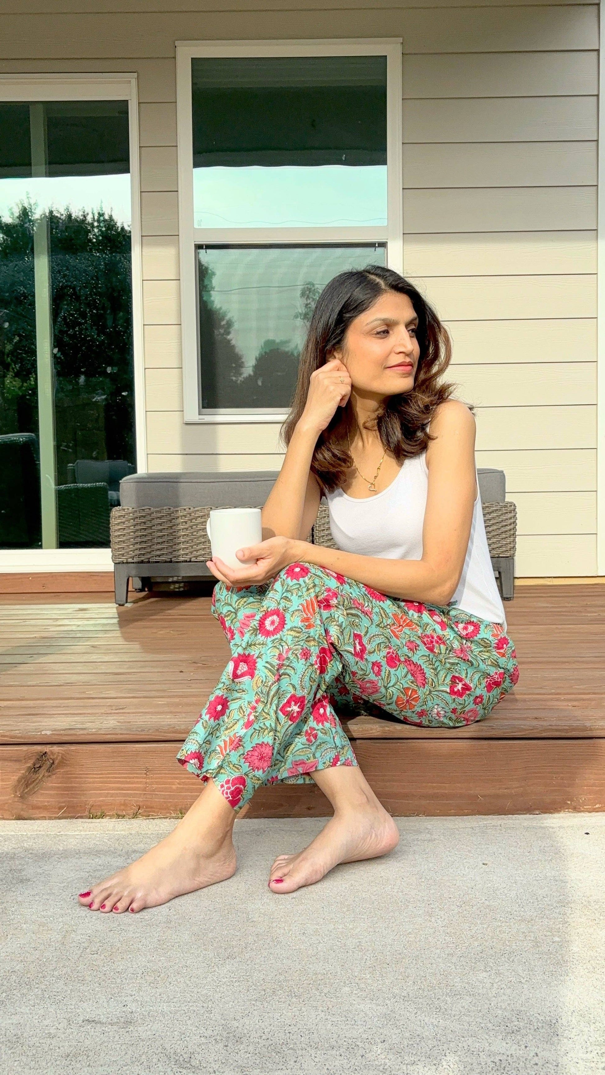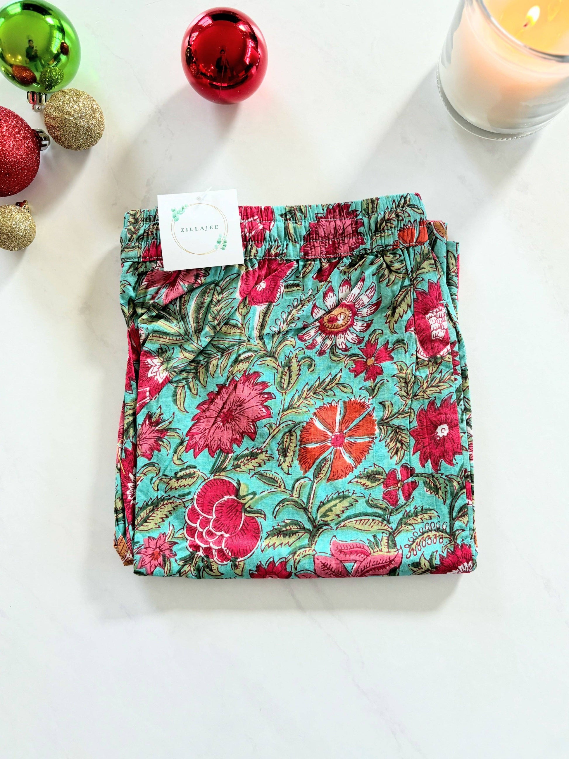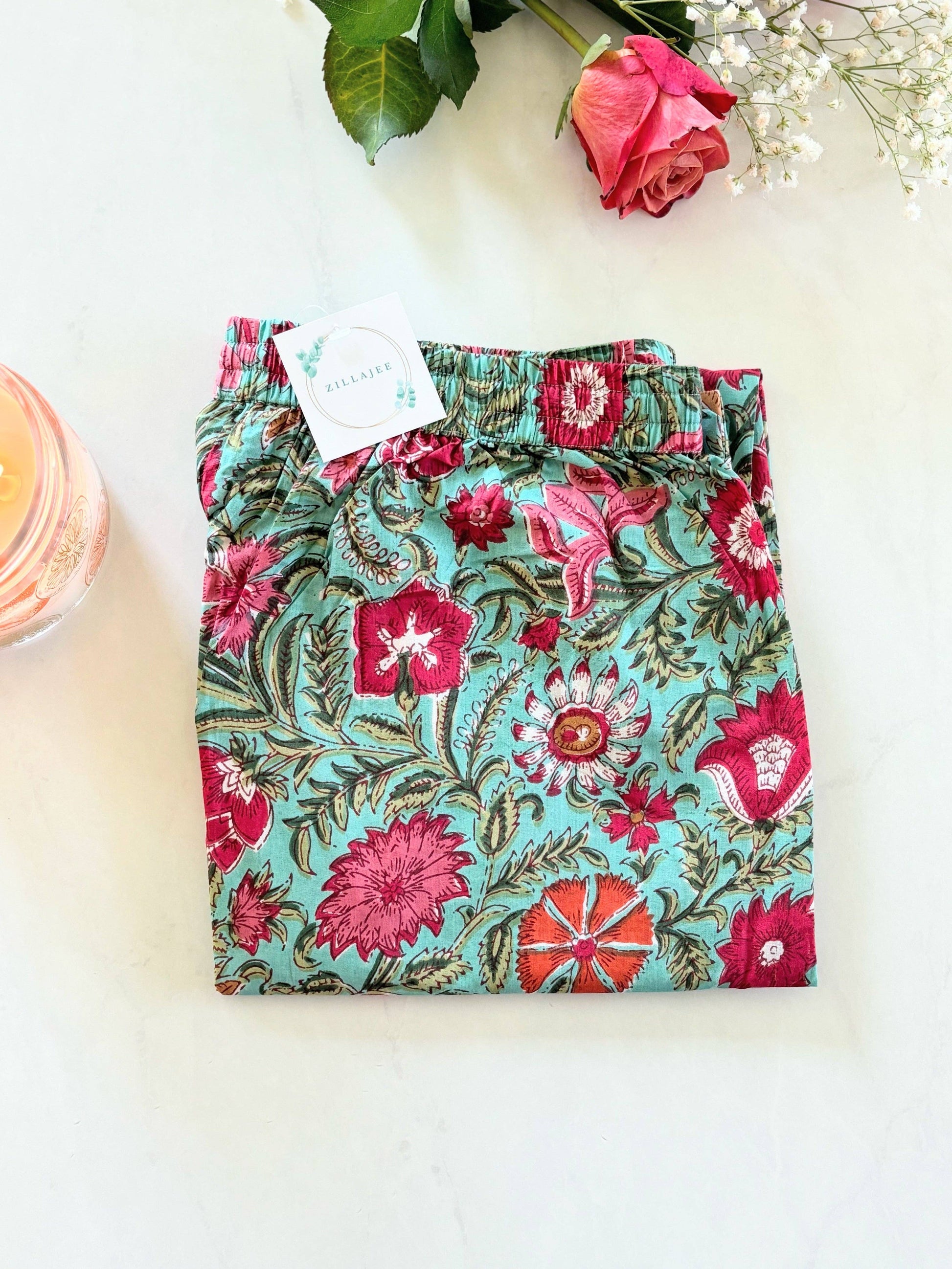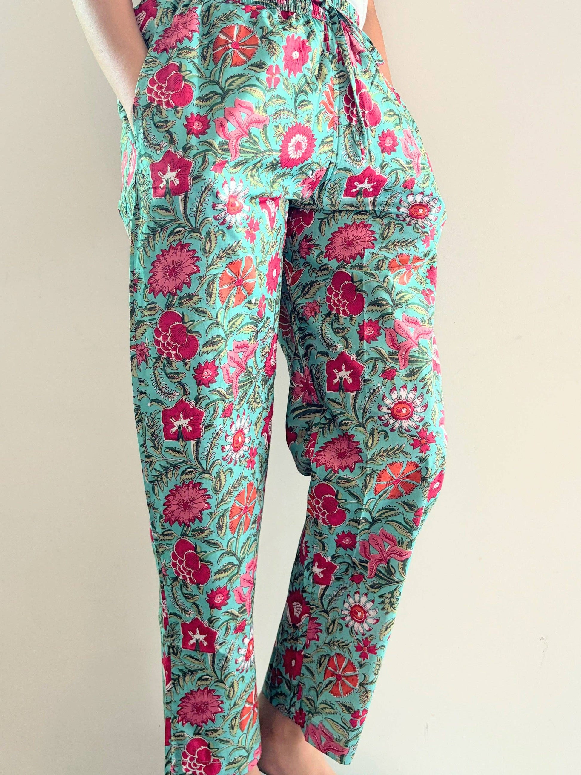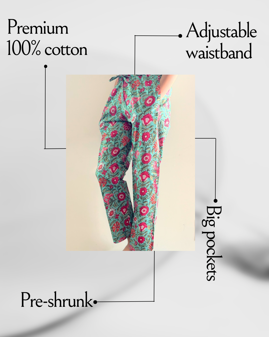 Comfy and breathable cotton lounge & sleep pants with a beautiful floral print, elastic waistband and side pockets, perfect for a modern and casual look.