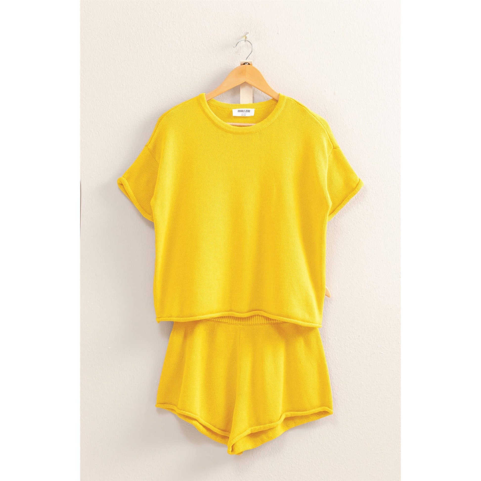 Bright Yellow Short Sleeve Basic Top And Shorts Set