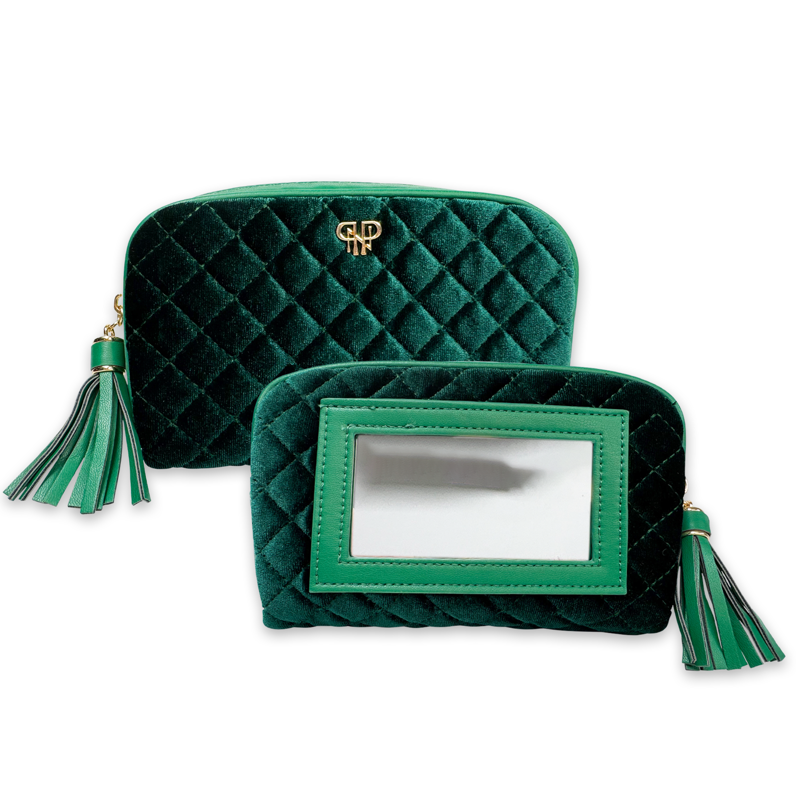 Meet the makeup bag that's as chic as it is practical - with a built-in mirror for effortless touch-ups on the go. The Glam Makeup Case in luxurious Emerald Velvet blends everyday function with a polished sophisticated finish. Inside, two slip pockets and a spacious central compartment keep your beauty must haves organized and easy to reach, and the easy to clean wipeable interior is a must! Compact enough to toss in your purse, stylish enough to show off - this is the makeup bag you'll reach for every single day.