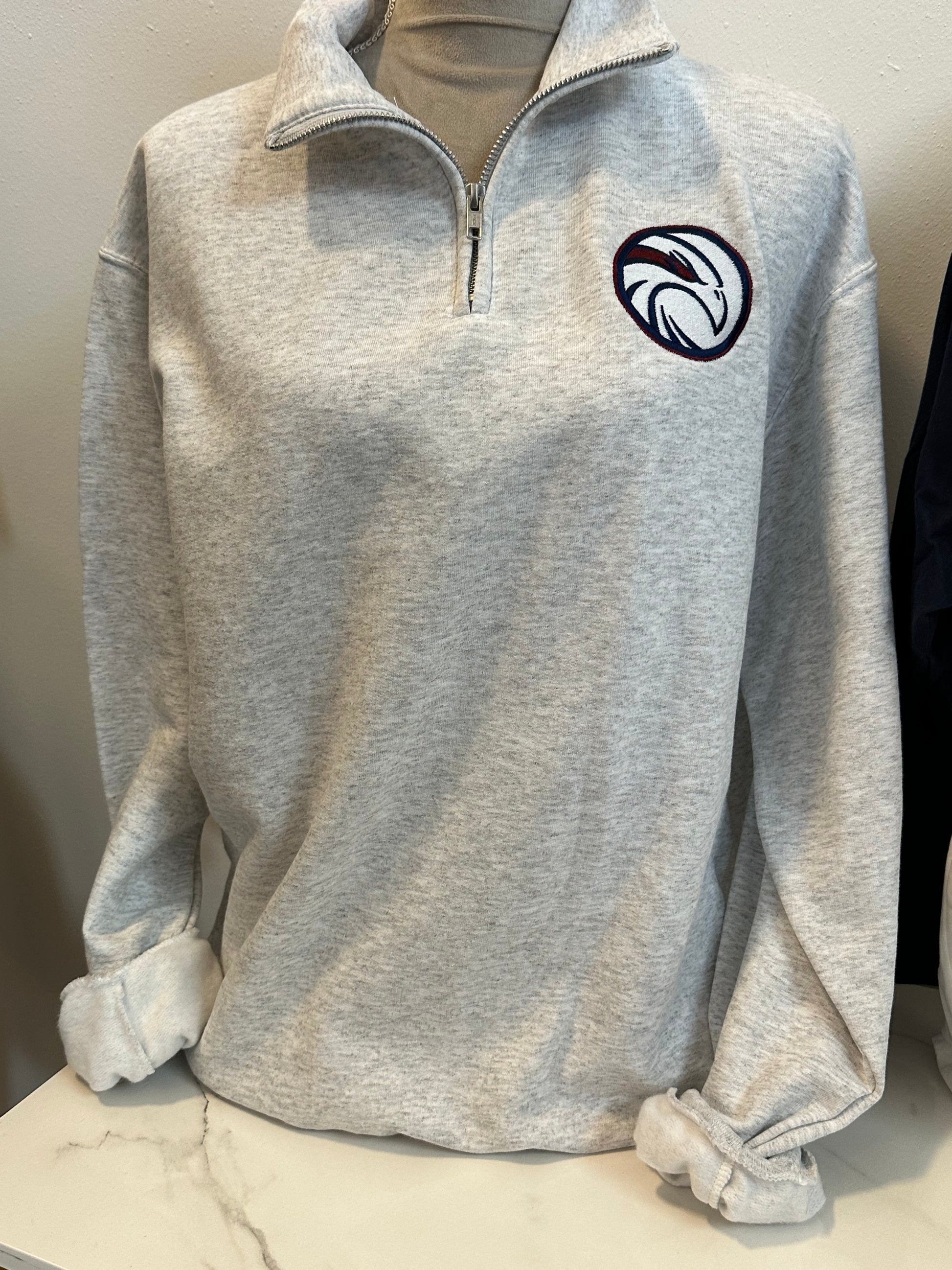 Quarter Zips are so COMFY and on TREND! Add a Hawks logo - and you are ready to Show your School Spirit! Unisex Sizing! Perfect for everyone! We love how the logo pops on this traditional sports ash grey! If you prefer another color - send us a message and we will make it happen for you!