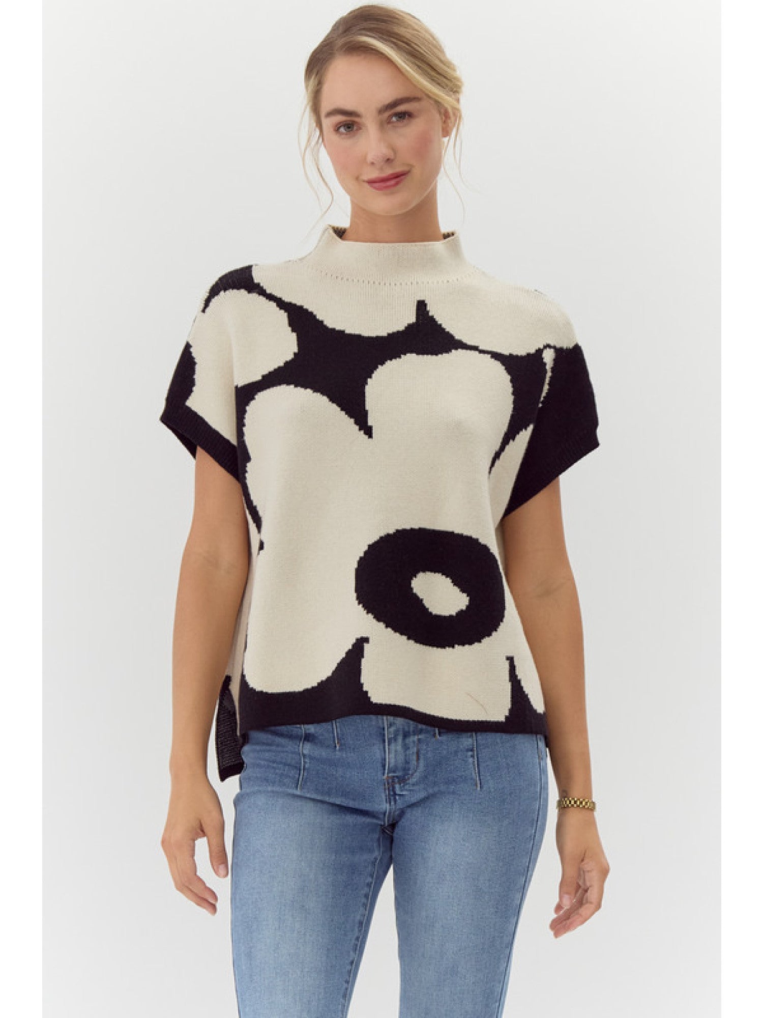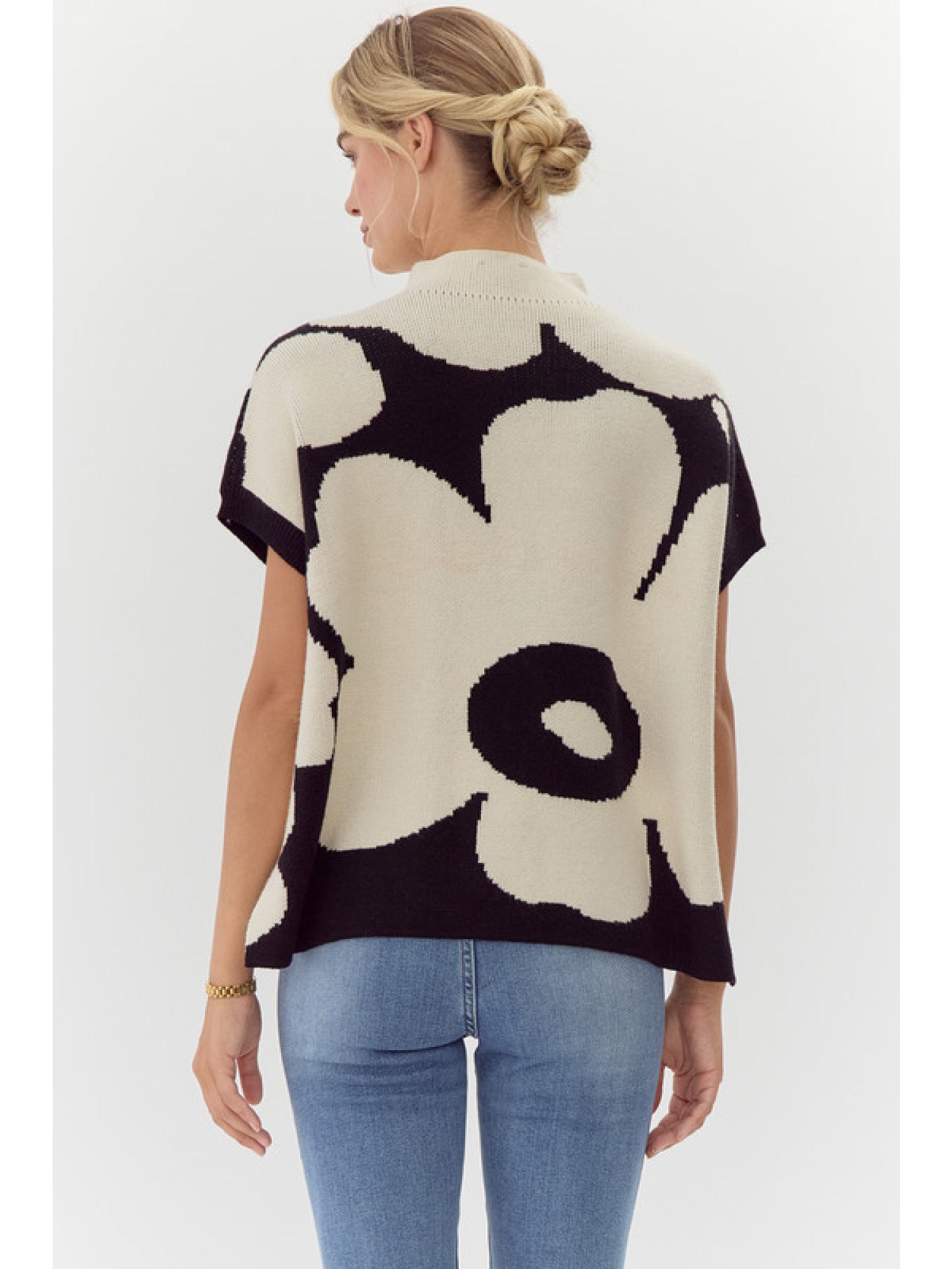 This knit top features a bold big flower print and a cozy mock neck. It has short dolman sleeves with charming slit details at the sides and cuffs. Lightweight and non-sheer, it’s perfect for adding a fun floral touch to your wardrobe. Made from a comfy blend of 50% viscose, 28% polyester, and 22% nylon.