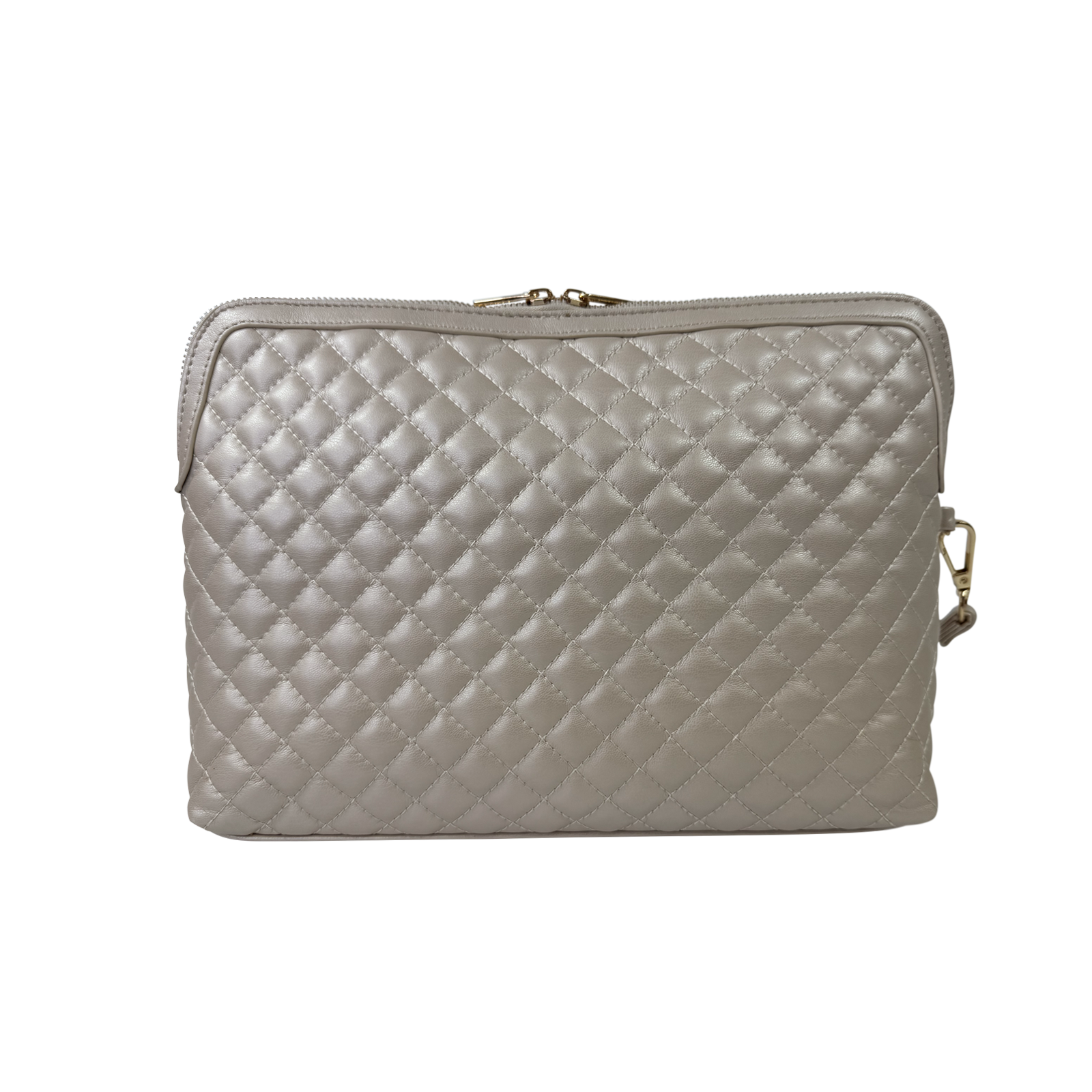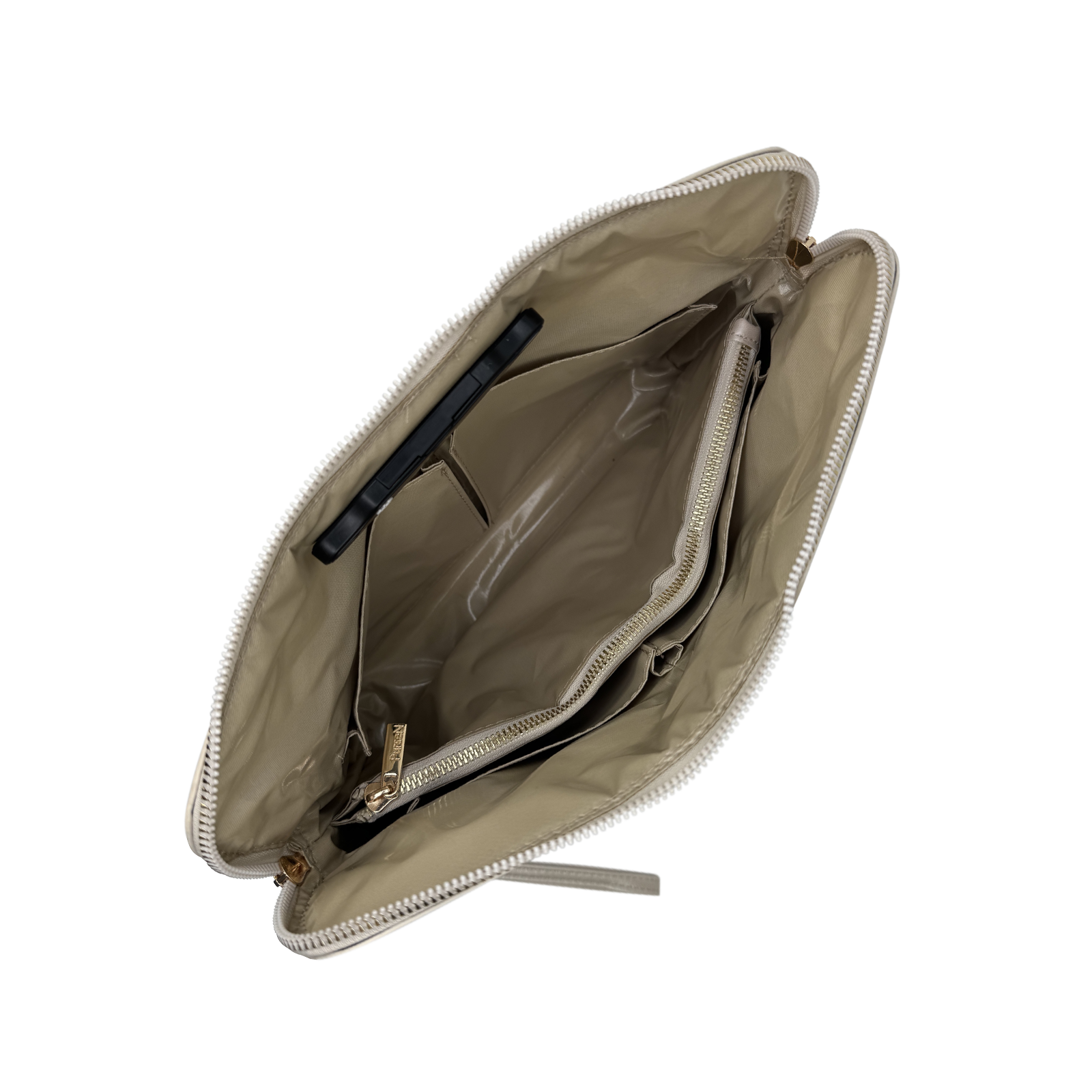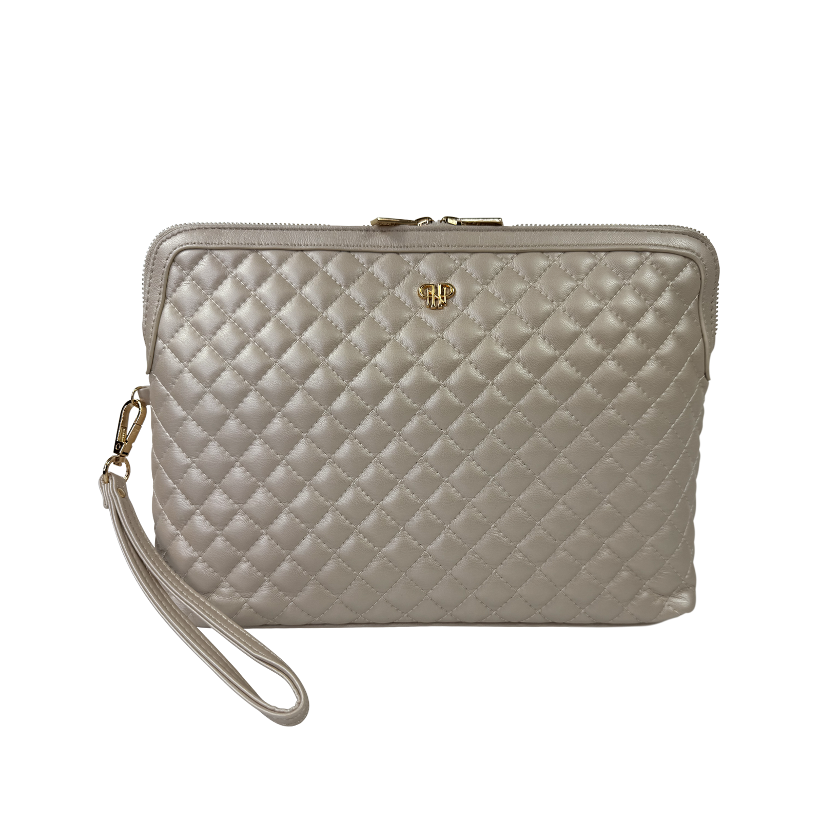 The Pearl LITT Makeup Case illuminates your beauty rituals with the amazing built-in LED Light. Ensure you never fumble in the dark looking for your essentials again. This isn’t just a makeup case. With the detachable wristlet this case doubles as a chic clutch. Seamlessly transition from day to night, effortlessly carrying your keys, lipstick, and more. The design includes a middle divider with a zipper closure that keeps your items securely in place, while the four interior pockets provide a dedicated space for your smaller essentials.