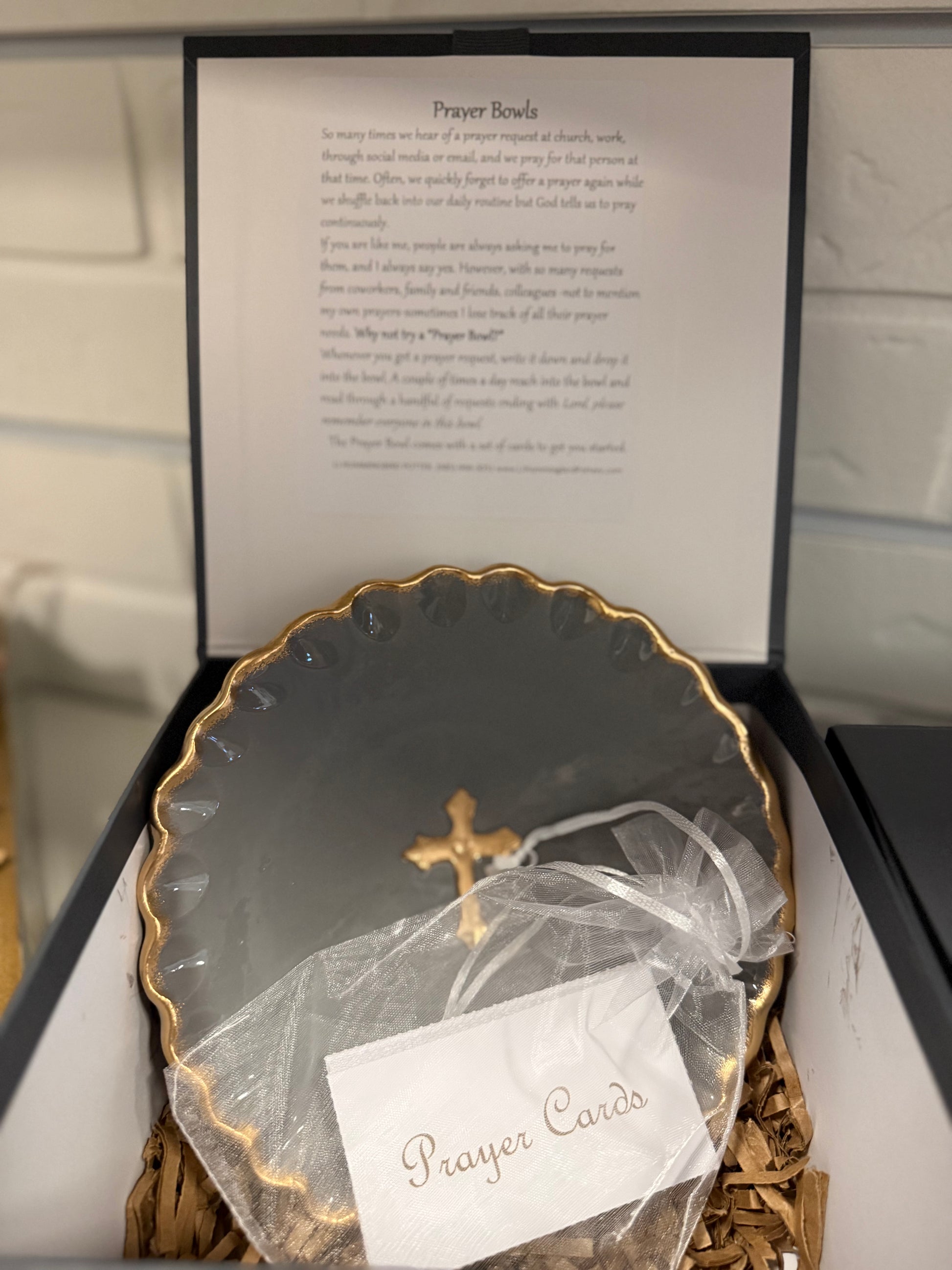 The Prayer Bowl comes in a beautiful blue box and a set of cards to get you started.