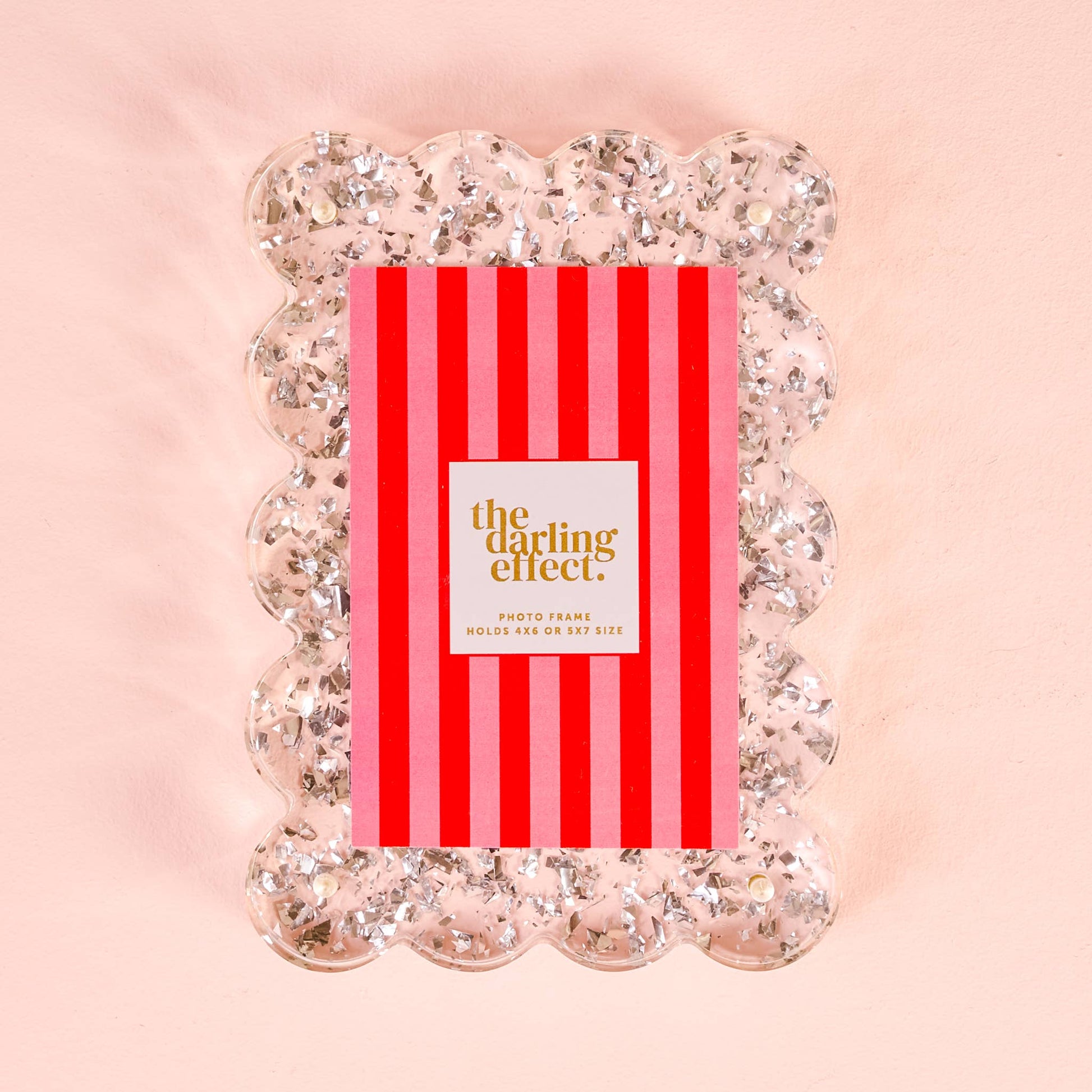 Rectangle Scalloped Acrylic Frame-Silver Glitter