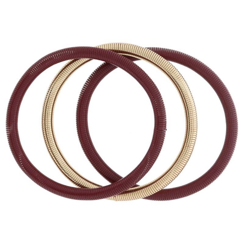 Perfect for Game Day! Set of 3, Maroon and Gold Stretchy Bangles Bracelet are 8" around and offer a comfortable, stretchy fit. Crafted as a jewelry set, they beautifully follow the path of fashion-forward link chain designs. J