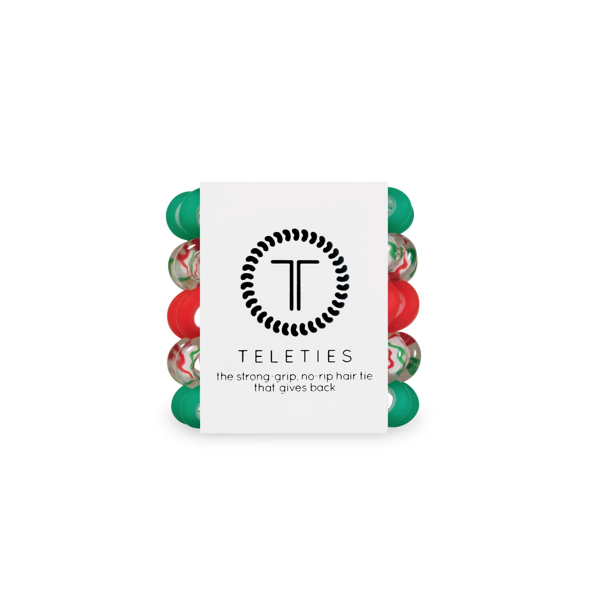 Celebrate Christmas with the perfect stocking stuffer and holiday accessory! Elevate your hair game and style with TELETIES – the hair tie that offers a strong grip without breakage and doubles as a trendy bracelet. Durable, chic, and practical, TELETIES are crafted to handle everyday wear while adding a stylish touch to your look. The ultimate holiday accessory for your hair!