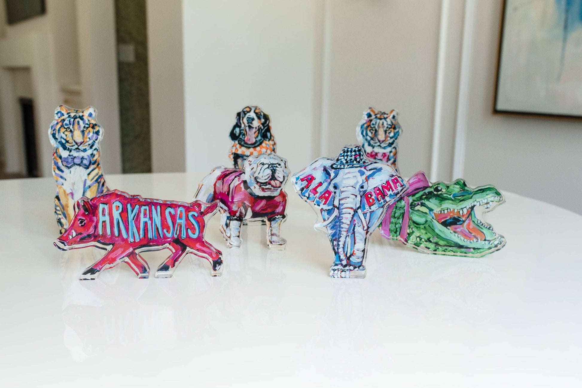 Beautiful lucite tabletop Art blocks by Chelsea McShane Art. These Make Perfect gifts for anyone on your list! All acrylic sizes vary depending on design. The larges range between 6X6 to 5X7. The minis are on average 2.5X4.5". *